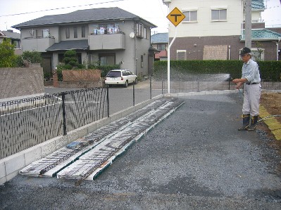 晴天が続いたので、砂はからからでした。定植後、動力散布機を使って水をかけました。