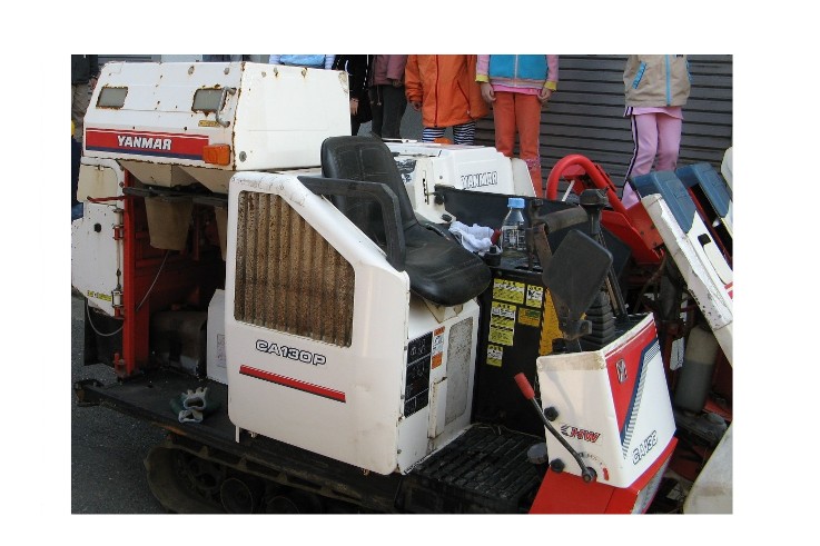 子供達の期待をうけ、コンバインはセル一発で始動。喜びの声が上がりました。